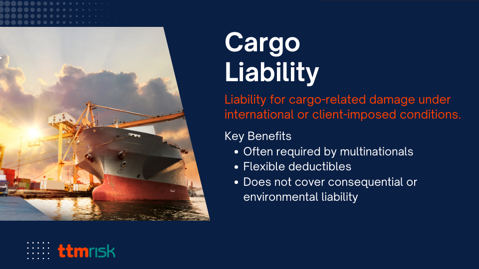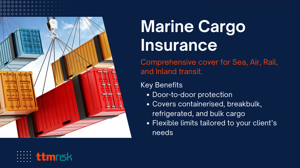 At TTM Risk, we offer a comprehensive range of specialist marine and cargo insurance products designed to meet the diverse needs of brokers and their clients. Whether your cargo moves by road, sea, air, or rail — or requires complex liability protection — our solutions are built for real-world risks and backed by responsive support, fast quoting, and flexible underwriting.