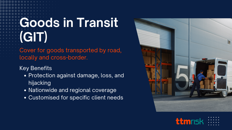 At TTM Risk, we specialise in responsive, expert-driven marine and cargo insurance solutions tailored for short-term insurance brokers. Whether it’s Goods in Transit, Marine Cargo, or complex liability risks — we move quickly, think practically, and support you at every step. With real industry experience, flexible underwriting, and a hands-on approach, we’re here to help you protect your clients’ cargo — and your reputation.